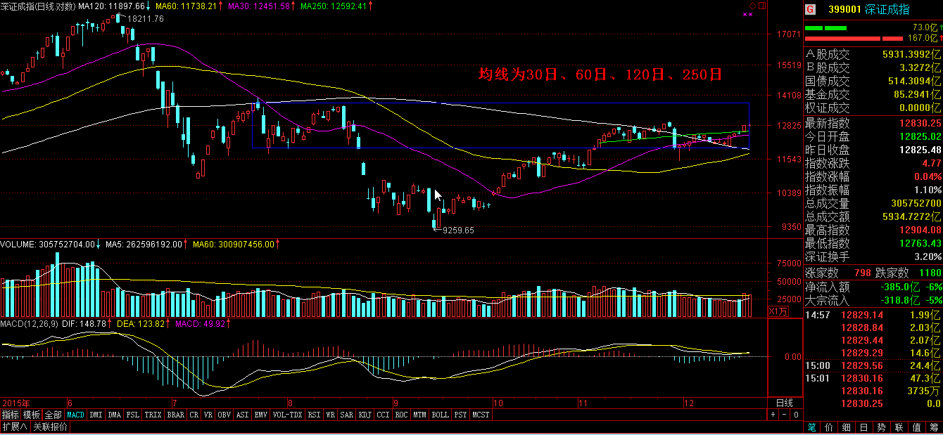 本周五(18日)这种走势,笔者认为是正常的,即12月14日以来,三大指数进入一个小的上升周期,很多个股突破了股灾之后(7月9日——8月18日)第一个反弹形成的平台高点,少量个股甚至达到股灾前的高度,这两个位置都是重要的筹码分布区间,出现震荡洗盘,消化获利筹码和解套盘都是正常的调整。