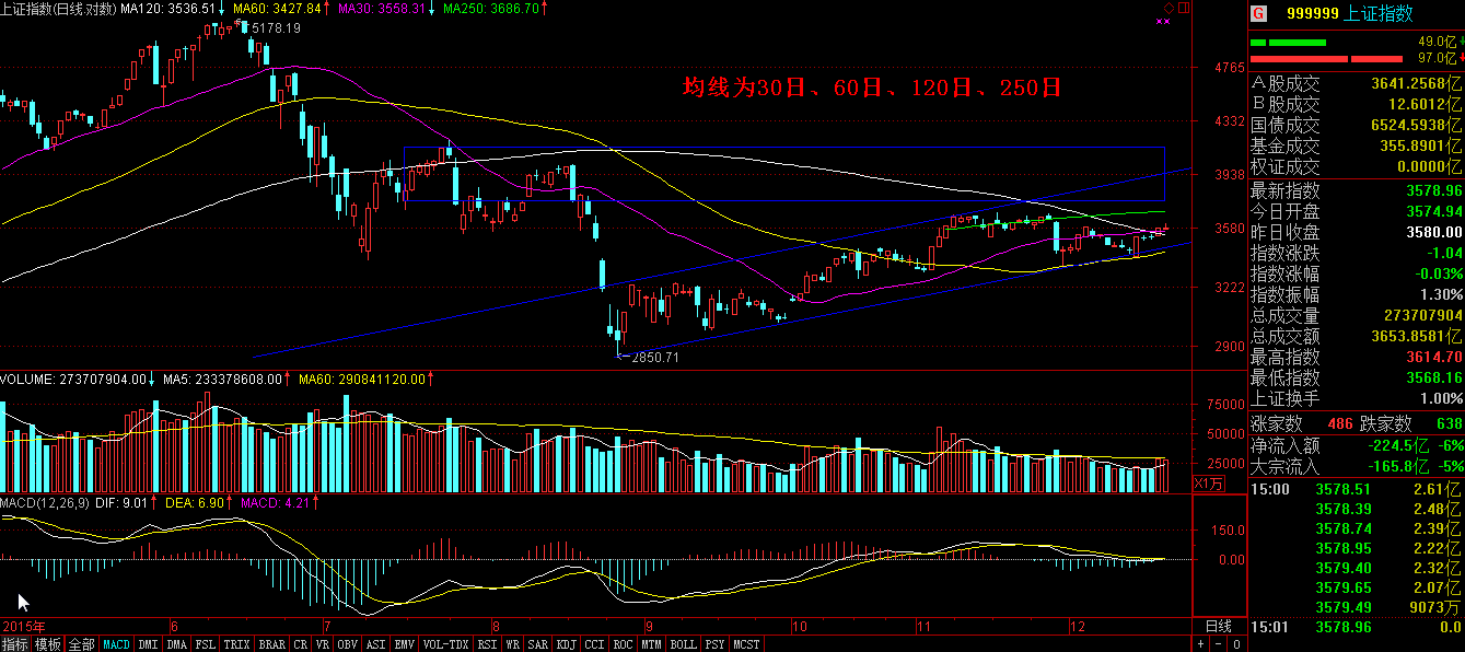 上证指数12月18日收盘3578.96点,成交3654元,下跌0.03%,上证指数阻力位3646.88点,支撑位3518.66点。